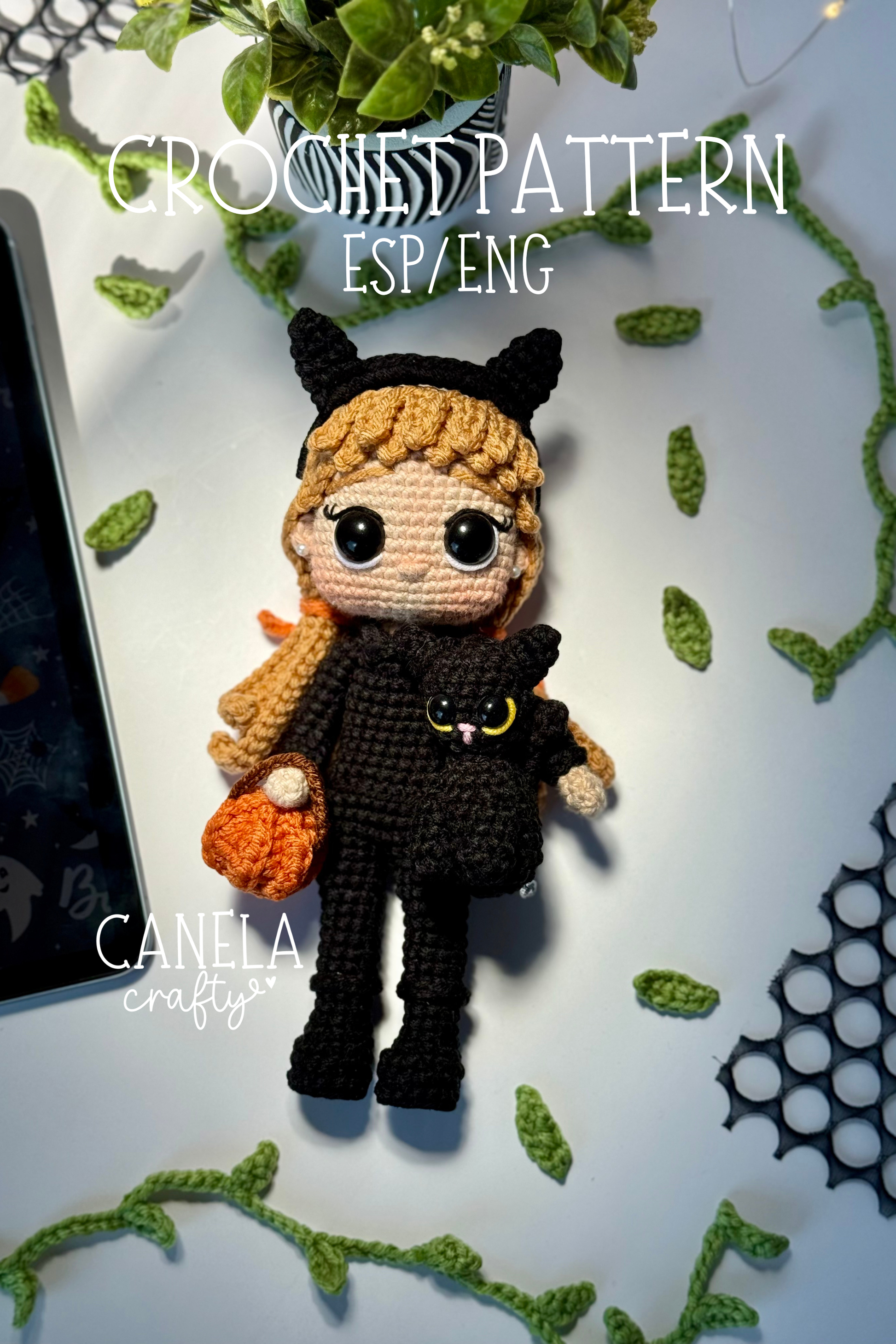 Patrón digital para la creación de Gatúbela🐈⬛ versión amigurumi by Canela Tissue✨