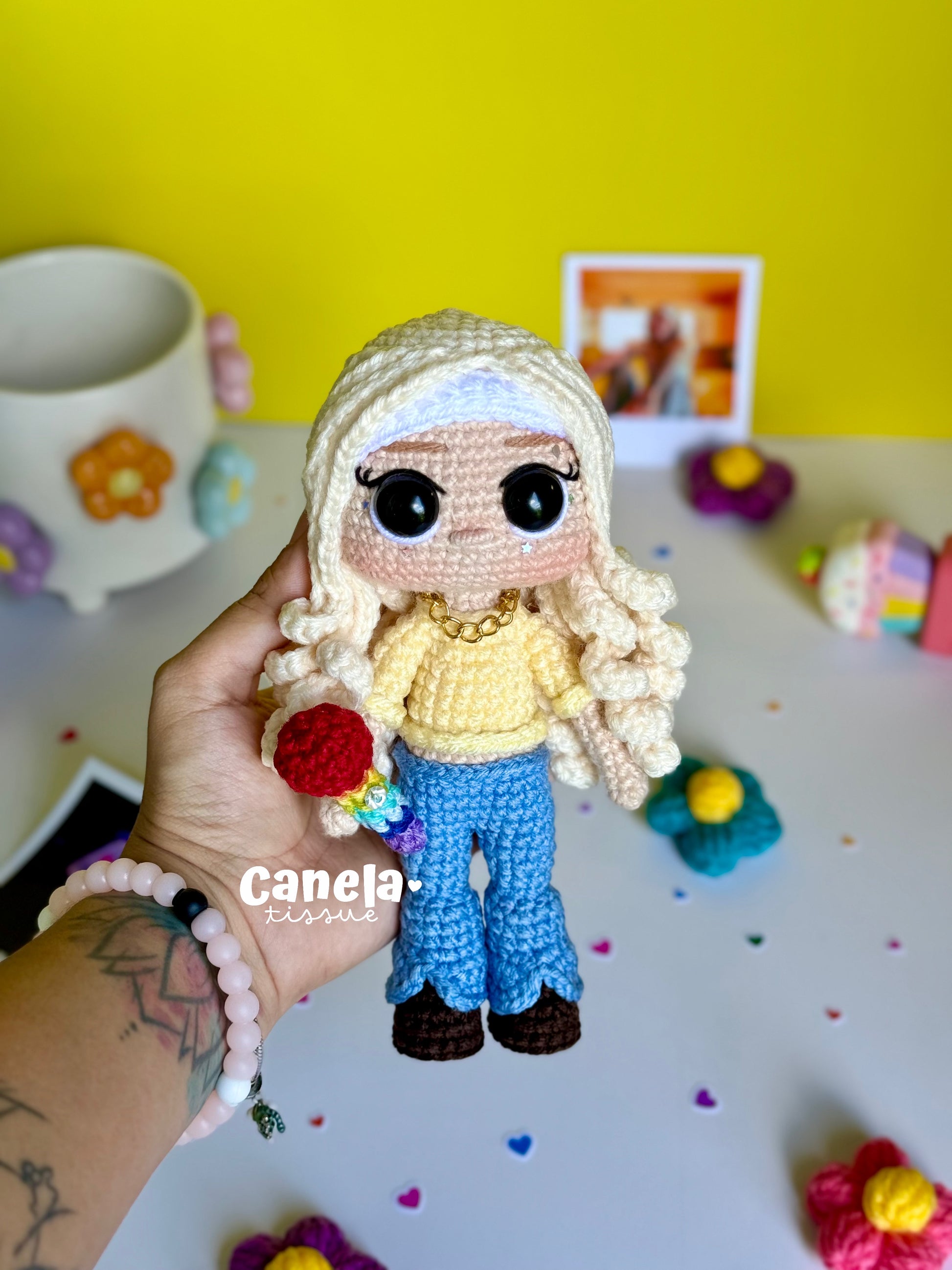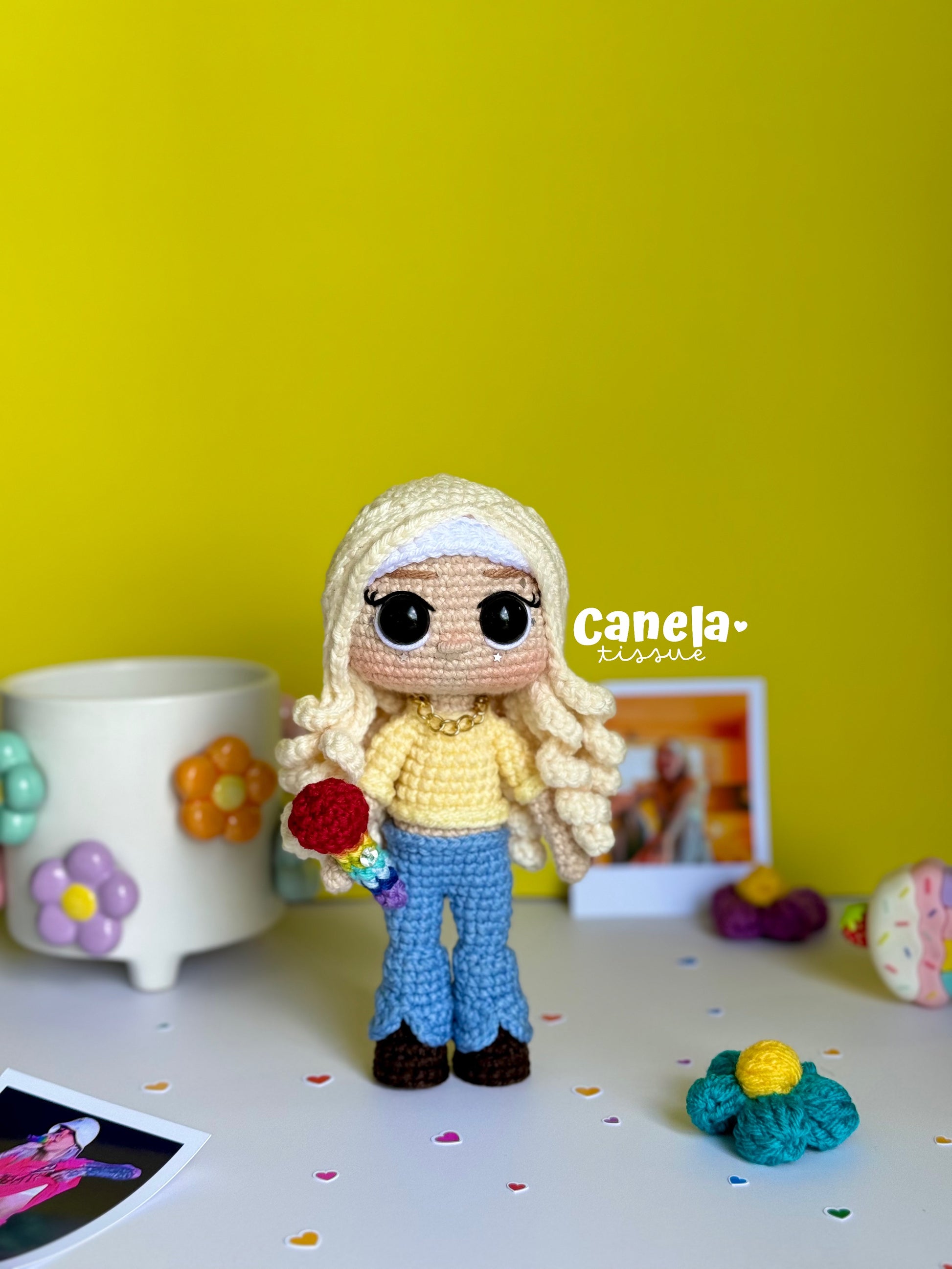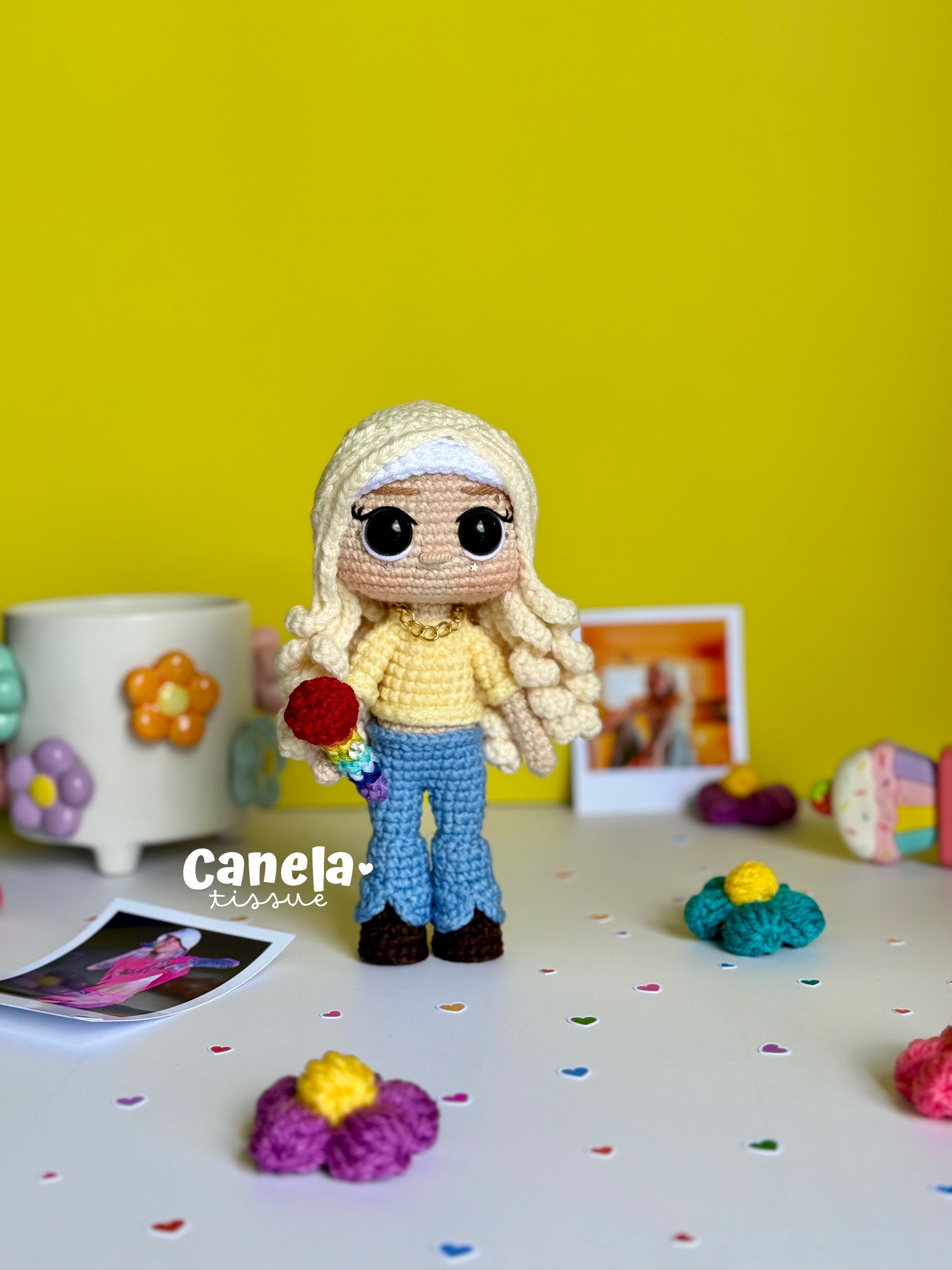 Incluye paso a paso con texto y fotos para crear el amigurumi, y sus accesorios🌸